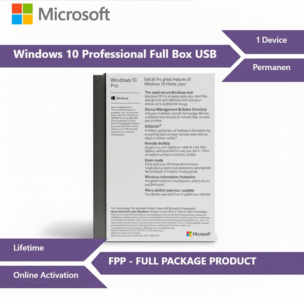 Microsofft Window 10 Professional FPP P2 32-bit/64-bit ENG INTL INDONESIA ONLY, asli, segel, resmi distributor Indonesia Synnex Metrodata / Astrindo. Product ini resmi dan hanya didistribusikan untuk Indonesia, oleh importir Resmi. Installer nya USB Original. Dijamin asli 110%, Bukan barang aspal / non distributor seperti yang banyak dijual di toko online. Buat apa bayar kalau dapatnya aspal? dirazia tetap kena :D INGAT!!! Pastikan software yang anda beli Asli dan RESMI. bukan sekedar bisa diaktivasi. 1 USB Boriginal 1 CARD KEY COA 1 Pack / Kotak barang 1 Panduan Manual Book -Aktivasi lancar bisa langsung by online dan bisa juga by phone -Unit bisa si update / diupgrate -Aman chek in di bandara internasional manapun -Setelah Aktifasi lalu dengan berjalannya waktu pc/laptop terserang virus / kerusakan pada sistem… Dan pc / laptop membutuhkan instal ulang perangkat , maka key dapat dipergunakan kembali pada PC yg sama - Key genuine microsoft & terdaftar di microsoft - Garansi Aktivasi aman dan terpercaya Cara pakai : 1. Masukin installer lalu ikutin tahapannya <-ini berlaku untuk PC/Laptop Kosongan , Kl Pc/Laptop ada windows bajakan ..diwajibkan instal ulang dulu menjadi kosong baru mulai masukan insteller yg baru dibeli. 2.Setelah tahap 1 finish , aktifkan internet lalu ubah region indonesia dan waktu GMT7 bangkok hanoi Jakarta 3.Setelah tahap ke 2 berhasil , masukin key yg di beli biasa melalui kolom search : slui / slui 4/ bisa dari kolom properties dan setelah key masuk … maka akan keluar aktivasi telah berhasil … itu menandakan perangkat lunak anda sudah berhasil di instal